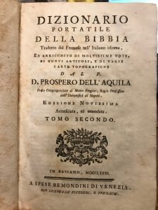 DIZIONARIO PORTATILE DELLA BIBBIA TRADOTTO DAL FRANCESE NELL’ITALIANO IDIOMA, ED ARRICCHITO DI MOLTISSIME NOTE, DI NUOVI ARTICOLI, E DI VARIE CARTE TOPOGRAFICHE. TOMO SECONDO