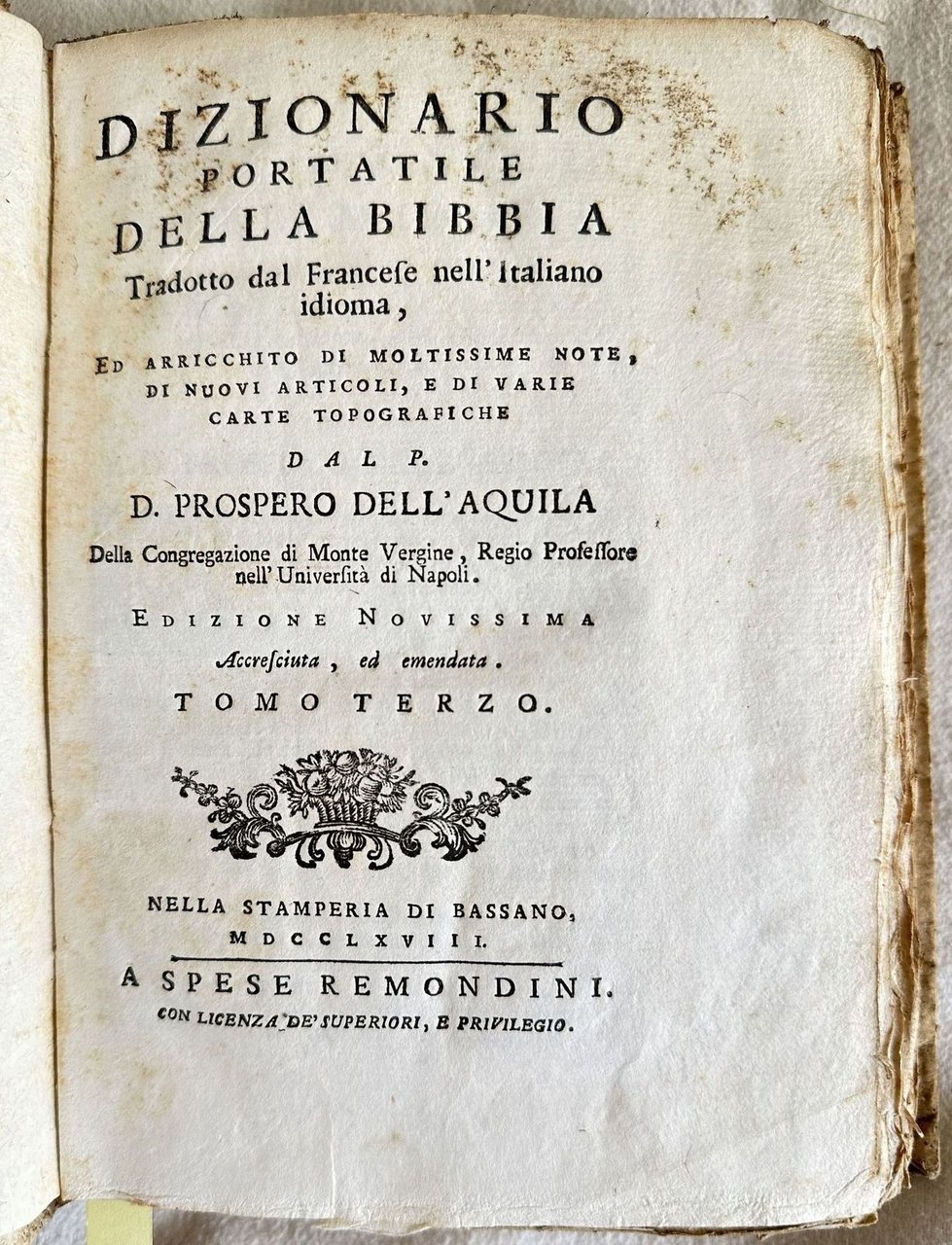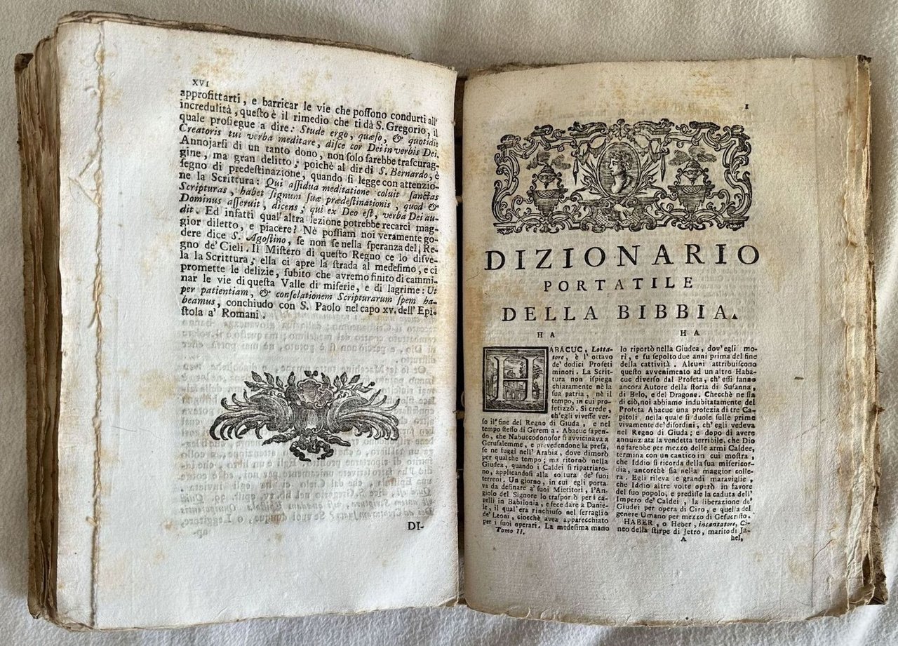 DIZIONARIO PORTATILE DELLA BIBBIA TRADOTTO DAL FRANCESE NELL'ITALIANO IDIOMA ED ARRICCHITO DI MOLTISSIME NOTE, DI NUOVI ARTICOLI E DI VARIE CARTA TOPOGRAFICHE