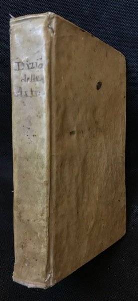 Legatura coeva in piena pergamena rigida con titolo manoscritto sul dorso e nervi passanti sugli angoli dei canalini, in 8vo piccolo cm12x19, pp 390 (2); testo su due colonne, 4 fregi xilografici. Segnatura A-Z8 Aa8 Bb4.