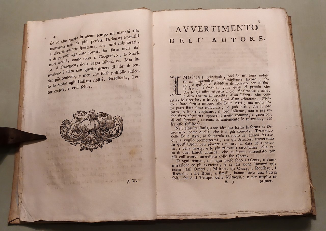 Dizionario portatile delle belle arti ovvero ristretto di cio' che spetta all'architettura, alla scultura, alla pittura, all'intaglio, alla poesia ed alla musica.