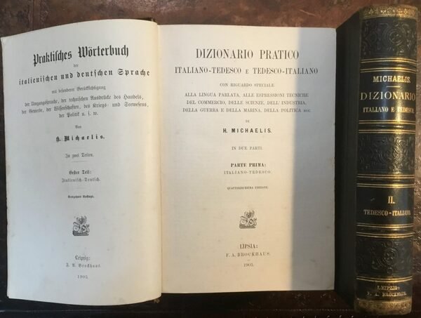 Dizionario pratico italiano-tedesco e tedesco-italiano. Con riguardo speciale alla lingua parlata, alle espressioni tecniche del commercio, delle scienze, dell'industria, della guerra e della marina, della politica ecc. In due parti. Parte prima: italiano-tedesco. Parte seconda: tedesco-italiano. Quattordicesima edizione.