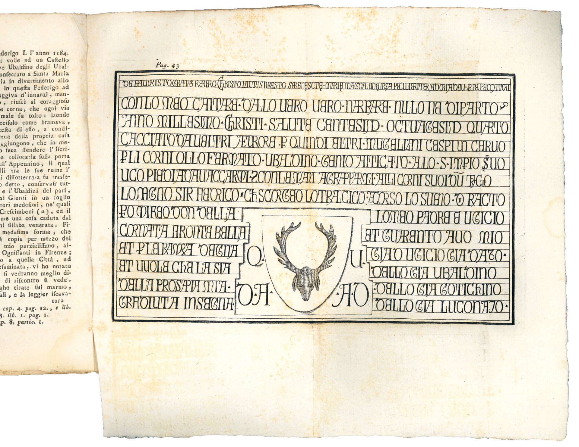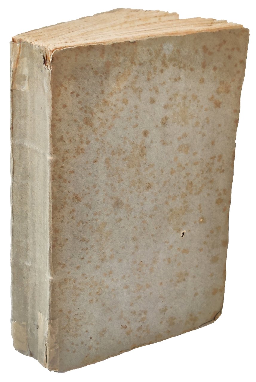 In 8vo (mm. 190x125). Pp. 355, [1 bianca] ed una tavola calcografica ripiegata fuori testo. Fregio xilografico al frontespizio. Con due figure in legno nel testo (pp. 31-32). Brossura muta coeva (un po' fiorita). Leggere bruniture e fioriture sparse, ma buona copia intonsa con barbe.