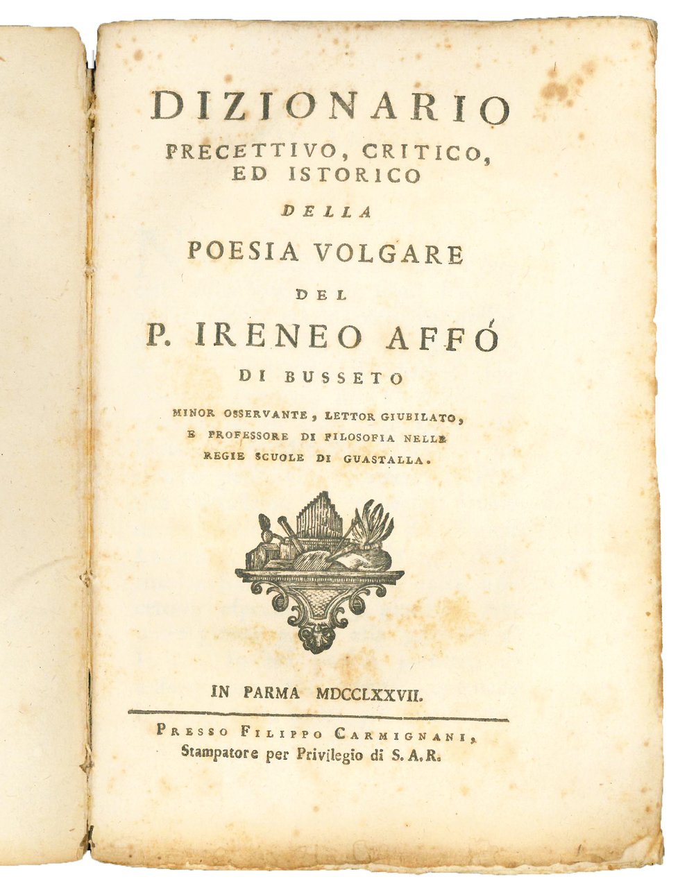 Dizionario precettivo, critico, ed istorico della poesia volgare del P. Ireneo Affò di Busseto [...]