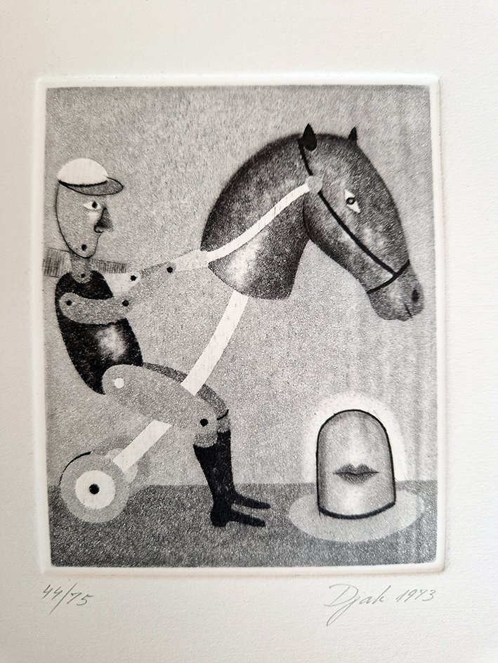 4°; cartella di 6 acqueforti sciolte tutte firmate e numerate a matita; misure dei fogli: cm.25,5x23,5. Tiratura 75 esemplari in numerazione araba oltre a X in numerazione romana. Cartella t.tela editoriale con titoli al dorso e fac-simile di firma al piatto. Bella edizione di questo noto artista serbo (Belgrado 1942-2011), incisore presente da anni nei nostri cataloghi di grafica. Stile raffinato, figurativo, naif con un'impronta di surrealismo.<BR>(vedi riproduz.)