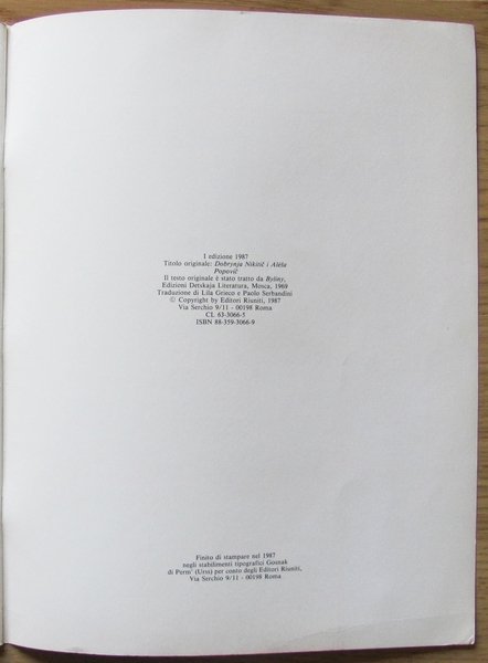 Traduzione italiana di Lila Grieco. Fregi e illustrazioni a colori a tutte le pagine e 7 a colori a piena pagina di V. Lukjanec. Editori Riuniti - Roma, I edizione 1987. Brossura editoriale. 34x26,5; pp.28. Raro e in Ottimo stato. , Ottimo (Fine)