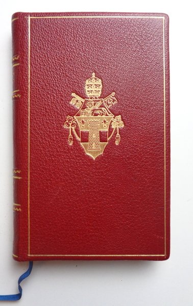 Un volume (10,5x17,5 cm) di VIII-237-(5) pagine. Legatura in tutto marocchino rosso, un filo dorato di inquadratura ai piatti, stemma dorato di GIOVANNI PAOLO II al piatto anteriore; dorso con titolo e fregi dorati. Risguardie in seta rossa e dentelle. Ottime condizioni. Alberto Martín-Artajo Álvarez (Madrid, 2 de octubre de 1905-31 de agosto de 1979) fue un político y propagandista católico español, ministro de Asuntos Exteriores durante la dictadura franquista.