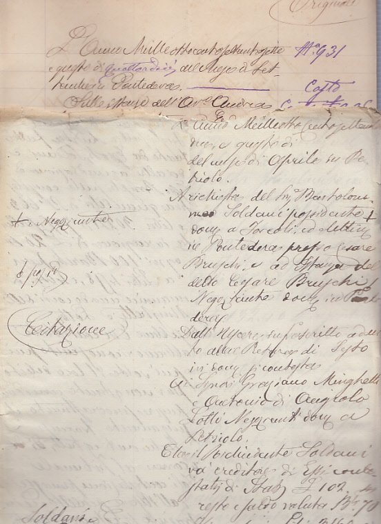 Documentazione Giurido Storica Inerente Una Causa Tra L'avvocato Maglioli Di Pontedera E Il Signor Cesare Bruschi Proprietario E Commerciante Anch'egli Di Pontedera - Citazione In Giudizio Manoscritta Tra Bartolomeo Soldani Nato A Forcoli E Residente A Po