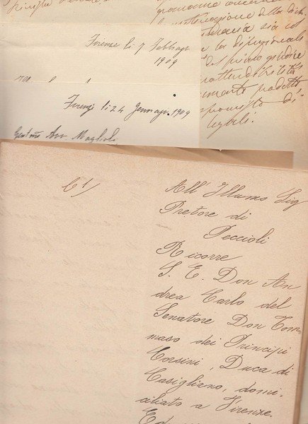 Documentazione manoscritta che comprende, tra l'altro, due lettere autografe di Andrea Carlo Corsini.