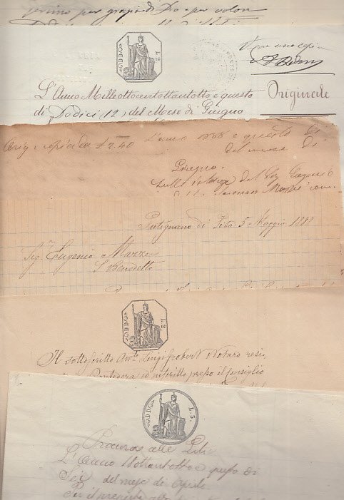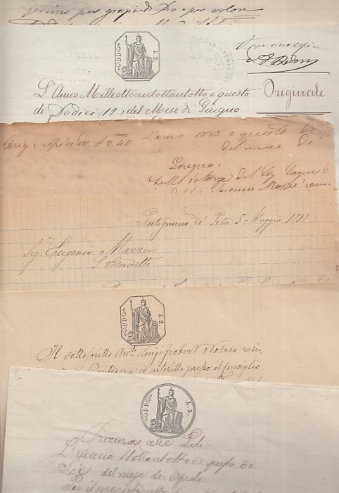 Fascioli con documenti manoscritti in carta bollata e carta libera, lettere e appunti manoscritti. MOLTO BUONO