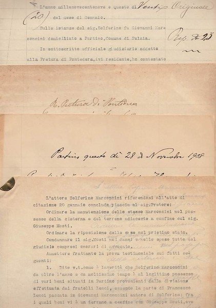 Documentazione Manoscritta E Dattiloscritta Inerente Una Questione Legale Tra Solferino Marconcini Di Partino Comune Di Palaia E Giuseppe Mosti Anch'esso Di Partino.