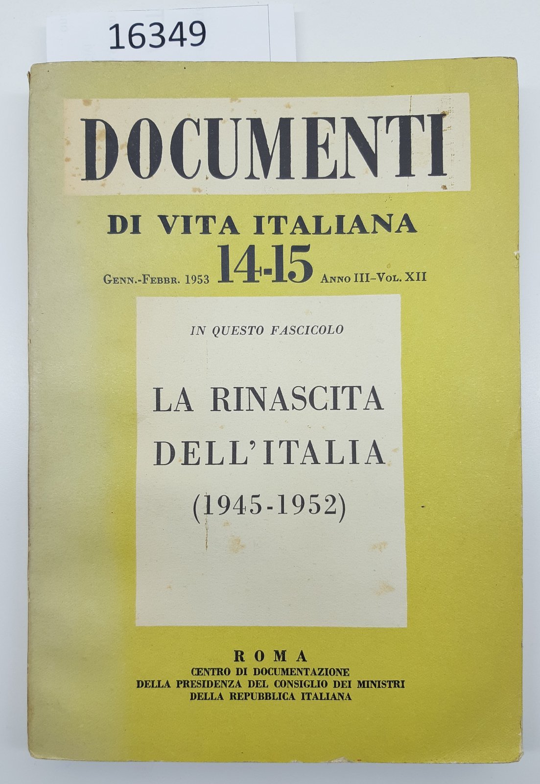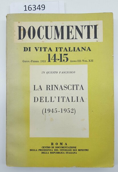 Documenti di vita italiana 14 - 15 La rinascita dell'Italia 1953 anno III volume XII