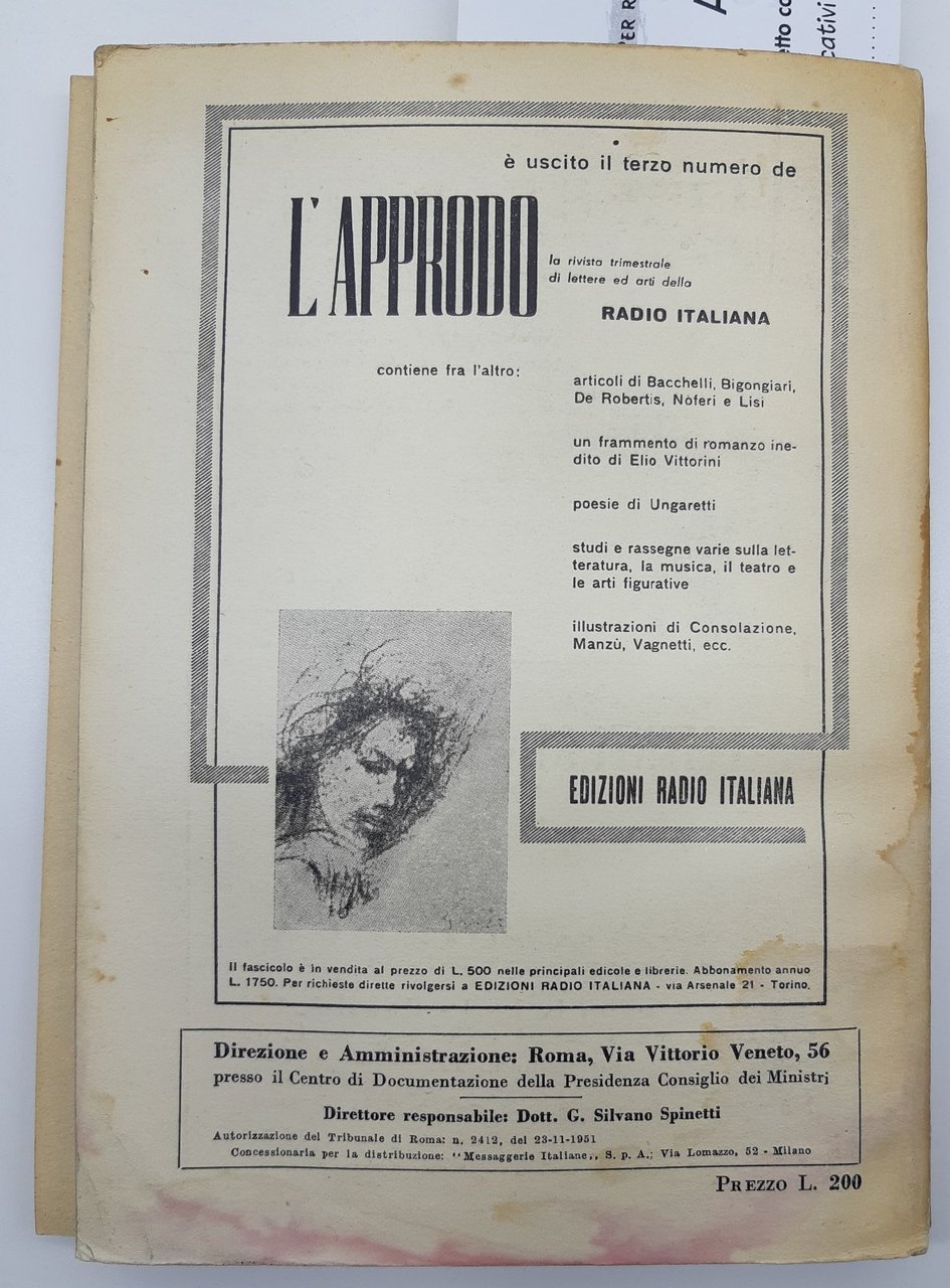 volume leggermente deformato, legatura editoriale morbida piatto anteriore leggermente scolorito con fioriture, dorso con aloni e macchie, quarta di copertina con alone di umidit‡, macchie e aloni di umidit‡ alle ultime pagine, alcune pagine staccate dal libro, vedere immagine, n. pagine 250, cm 20 x 15