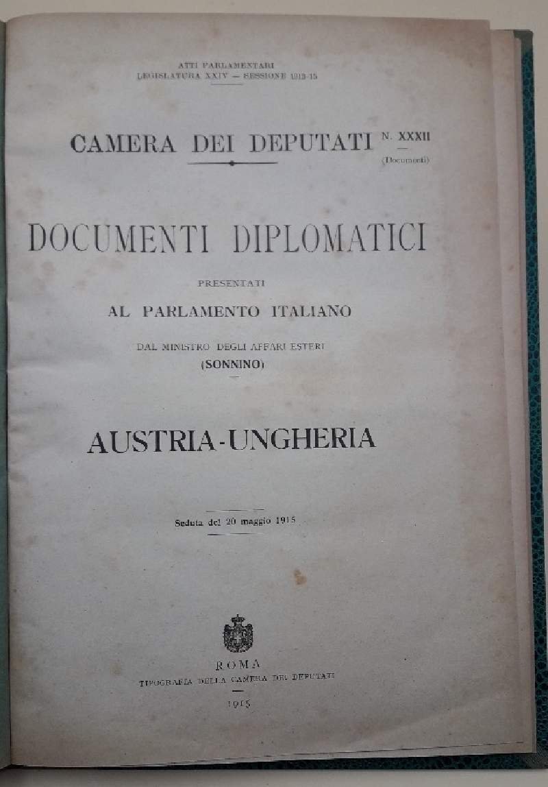 DOCUMENTI DIPLOMATICI PRESENTATI AL PARLAMENTO ITALIANO DAL MINISTRO DEGLI AFFARI ESTERI(SONNINO) AUSTRIA -UNGHERIA(1915)