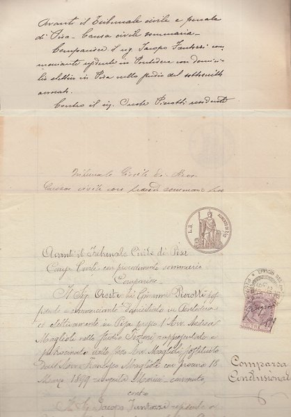 Documenti Manoscritti Aventi Ad Oggetto Una Causa Che Vede Contrapposi Oreste Pierotti Di Pisa Tito Loumbard E Jacopo Fantozzi Di Calcinaia In Relazione Alla Macellazione E Vendita Di Una Vitella Probabilmente Malata
