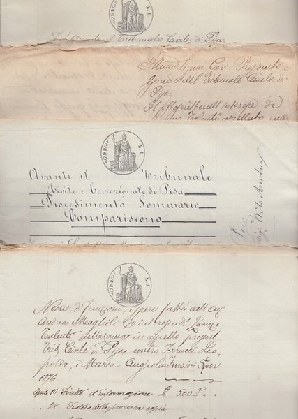Documenti Manoscritti Aventi Ad Oggetto Una Causa Tra Lorenzo Talenti Agricoltore Domiciliato Alle Fornacette In Comunità Di Calcinaia Contro Leopolodo E Mariangela Ferrucci Possidenti Domiciliati Alle Fornacette Di Calcinaia Avente Ad Oggetto La Richiest