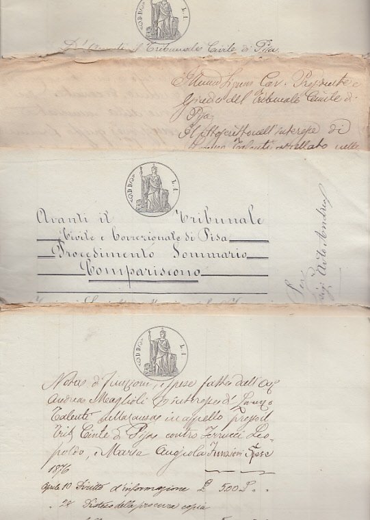 Fascicoli con documentazione manoscritta aventi ad oggetto la causa tra Sebastiano Talenti contro la madre e il fratello della di lui moglie, Filomena Ferrucci. Il Talenti affermava il mancato pagamento di una parte della dote che la famiglia di origine della moglie asseriva essergli già stata pagata. All'interno numerosa documentazione originale molta della quale in carta bollata, numerosi appunti manoscritti e alcune lettere. Materiale interessante da studiare.