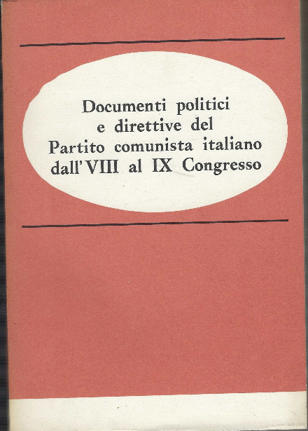 Documenti politici e direttive del Partito comunista italiano dall'8. al 9. congresso