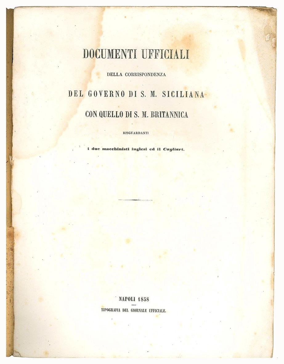 Documenti ufficiali della corrispondenza del governo di S.M. siciliana con quello di S.M. britannica risguardante i due macchinisti inglesi ed il Cagliari
