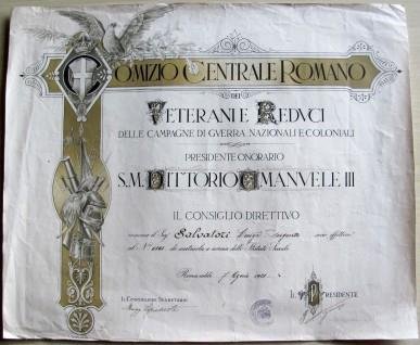 Documento Di Nomina A Socio Effettivo Del Comizio Centrale Romano Dei Veterani E Reduci Delle Campagne Di Guerra Nazionali E Coloniali