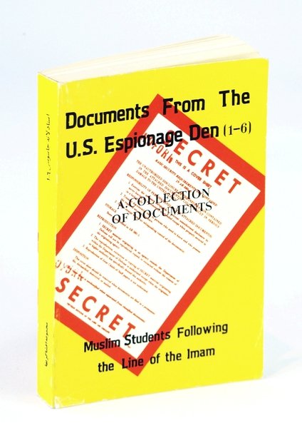 Approximately 500 pages. The first 204 pages consist entirely of a trove of 73 fascimile reprints of classified American documents, some or all of which we assume were captured by Iranian students when they overran the American embassy in Teheran at the onset of the Iranian hostage crisis. Titles of these documents include: Planning for the Shah to Come to the U.S.; Goals and Objectives in Iran; Iranian Revolution a CIA Plot; Ali Reza Farahmand; Conversation with the Mayor of Abadan; Mehdi Rowghani; Meeting with Radical Movement Leader Moghadam Maragheie; Country Plan Proposal. Balance of text is in a different language, presumably Farsi. English portion undated but probably printed circa 1980. Includes four pages of color photos of the contents of what appears to be the passport of one Thomas Leo Ahern, Jr. Unmarked with average wear. Presumably an expose of America's clandestine foreign policy affecting Iran in the late 1970s. Book