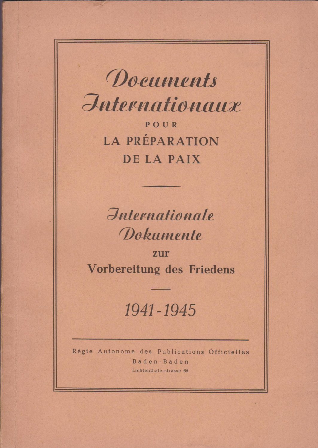 Documents Internationaux pour la Préparation de la Paix. Internationale Dokumente zur Vorbereitung des Friedens. 1941 - 1945.