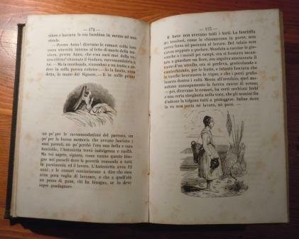 Torino, Tipografia economica diretta da Barera; volume rilegato tutta tela, in 16°, pp. 207. Frontespizio incorniciato con una vignetta. Numerose incisioni nel testo, in tavole fuori testo, testatine e capo lettera figurati. su carta forte. Legatura salda, fioriture.