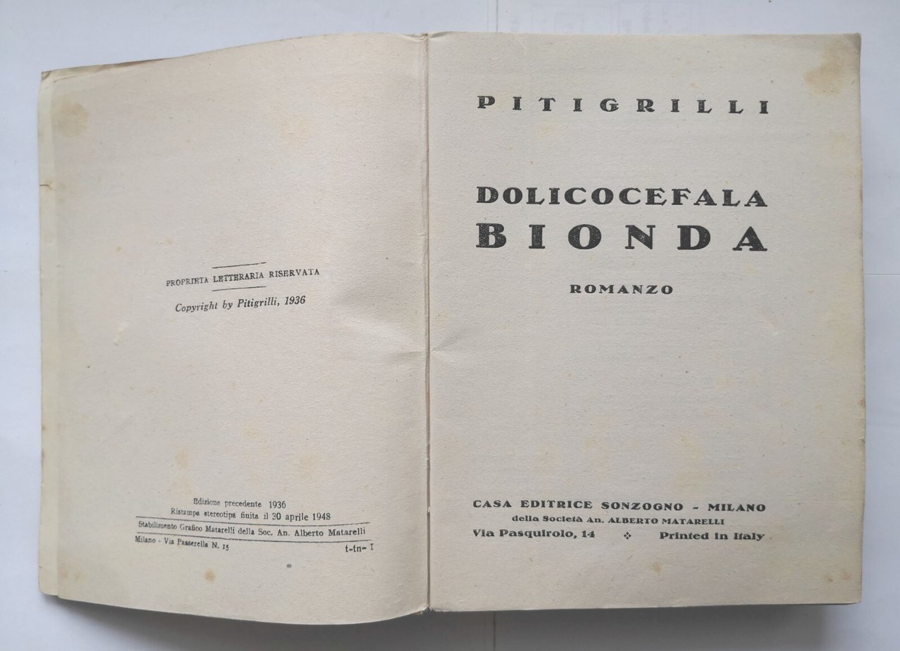 DOLICOCEFALA BIONDA di Pitigrilli 1948 Sonzogno Romanzo Dino Segre