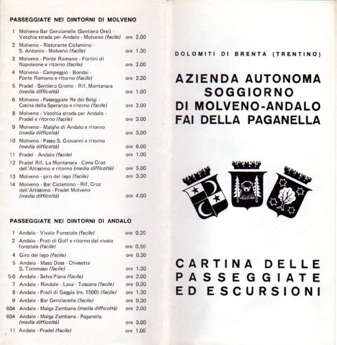 Dolomiti di Brenta (Trentino): Azienda Autonoma Soggiorno di Molveno Andalo Fai della Paganella: Cartina delle passeggiate ed escursioni.