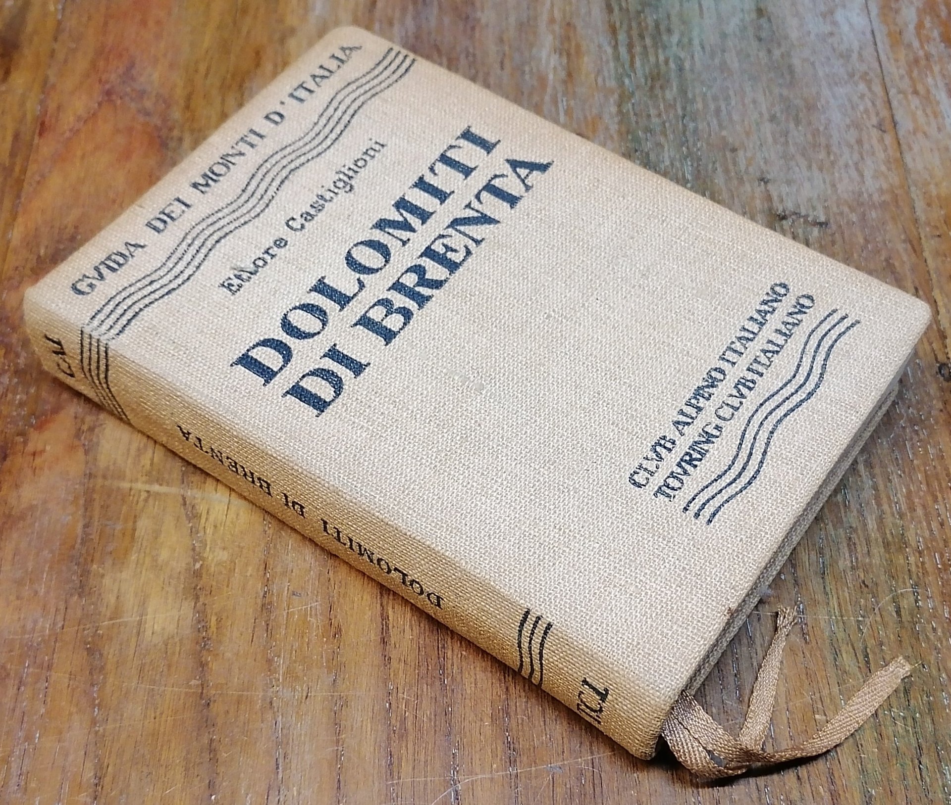 (Montagna - Alpinismo - Guide) In 16°, legatura editoriale in piena tela grigia, titoli ed impressioni in blu al dorso ed al piatto anteriore, doppio segnalibro in tessuto, tagli spruzzati, pp. 498, con 95 schizzi nel testo, 7 cartine (anche a doppia pagina e ripiegate) e 16 fotoincisioni fuori testo. Prefazione di Bartolomeo Figari. Collana : "Guida dei Monti d'Italia". Prima edizione pubblicata sotto gli auspici della Società degli Alpinisti Tridentini, Sezione di Trento del CAI. Tela della legatura lievemente ingiallita, peraltro ottimo stato di conservazione.