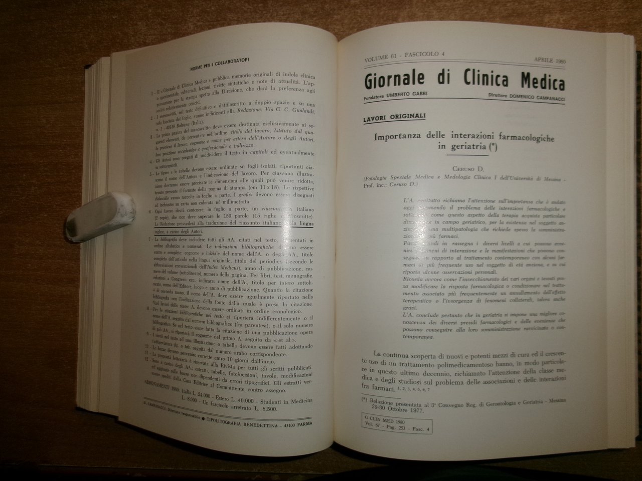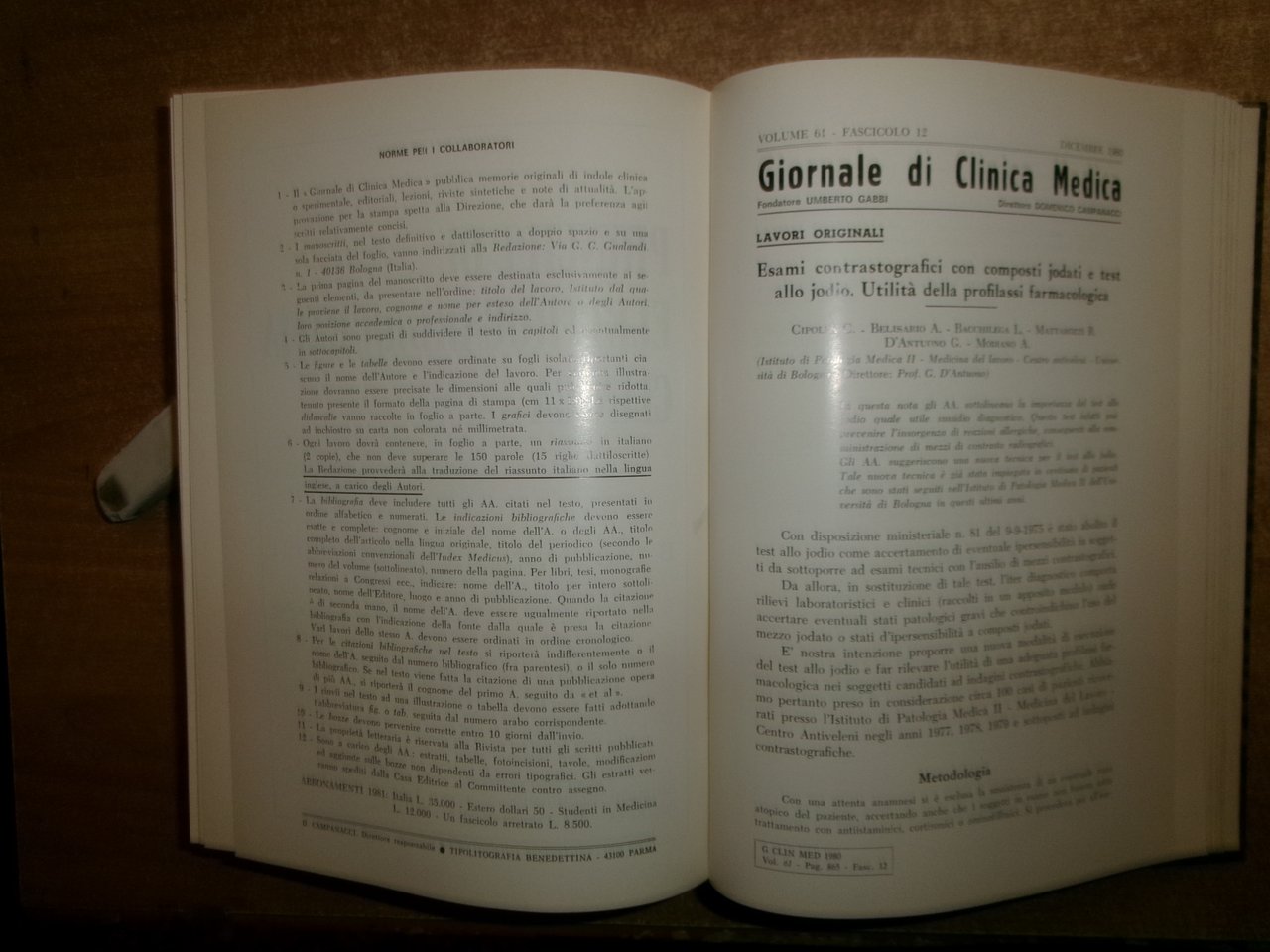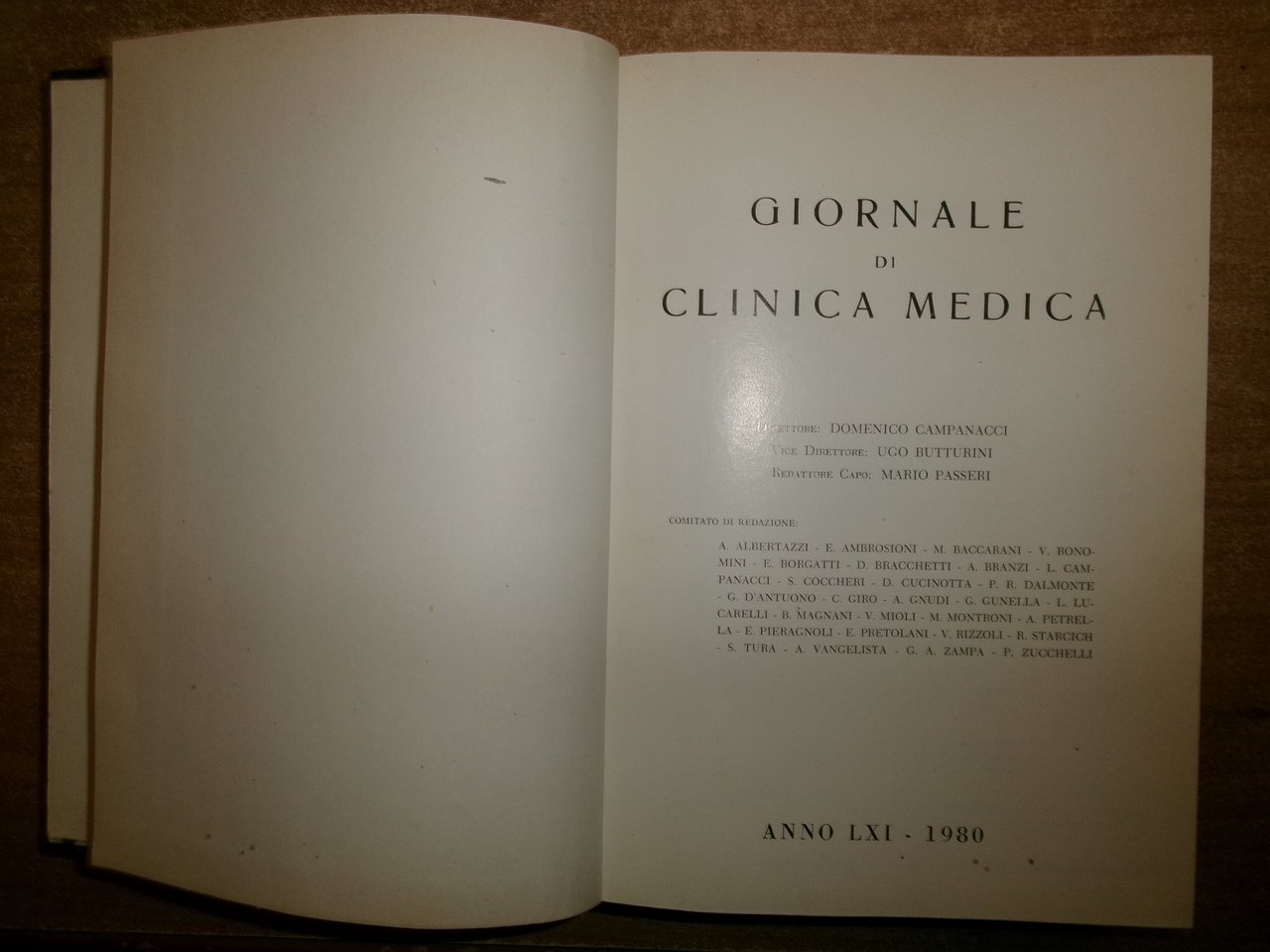 DOMENICO CAMPANACCI. Giornale di Clinica Medica 1980. 12 fascicoli in-8° legati assieme in m-tela. xvi, 947 pp. con figure in nero n.t. Ottimo stato. Uff. salon. sporta 3.