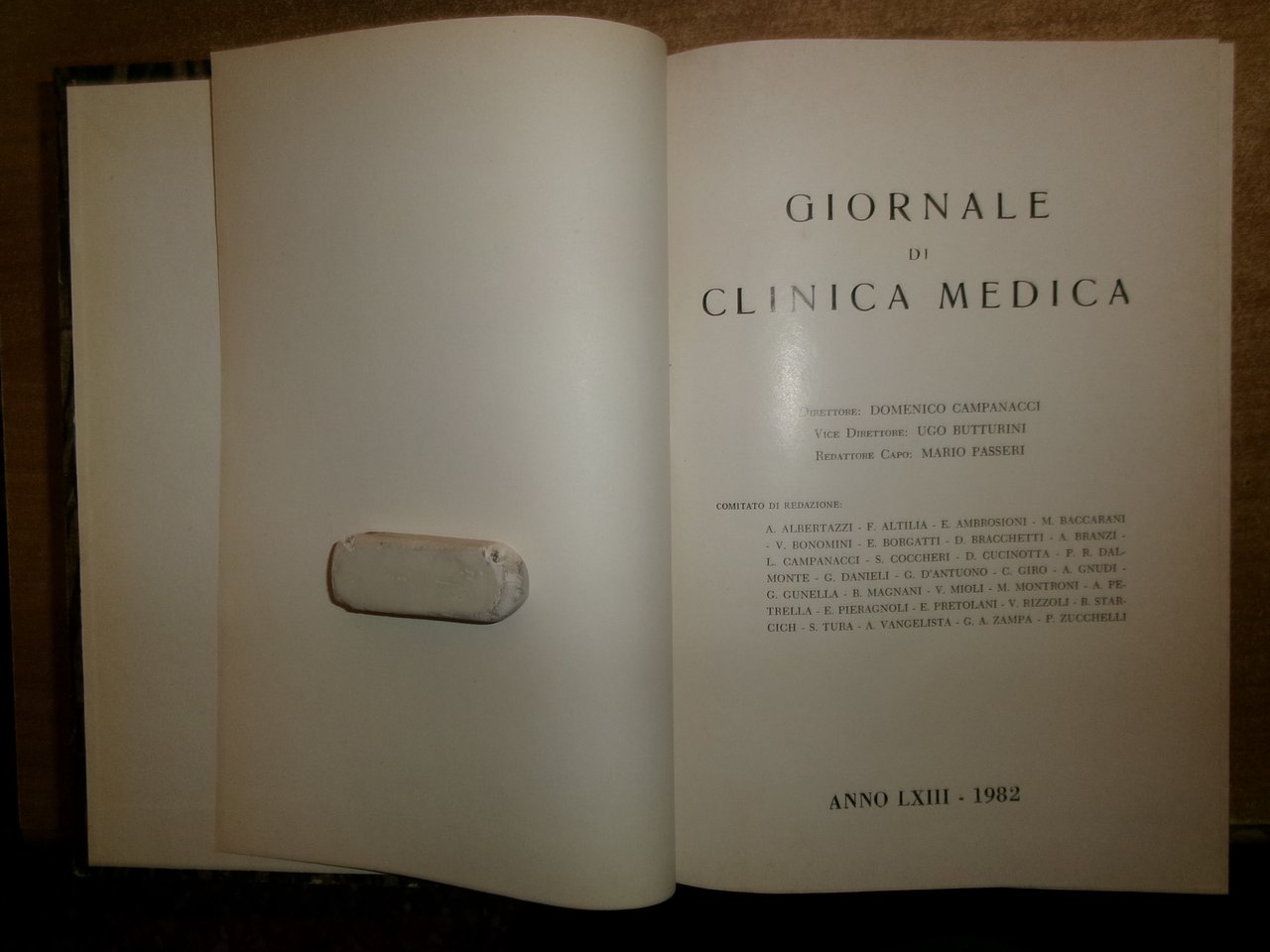 DOMENICO CAMPANACCI. Giornale di Clinica Medica 1982. 12 fascicoli in-8° legati assieme in m-tela. xv, 994 pp. con figure in nero n.t. Ottimo stato. Uff. salon. sporta 3.