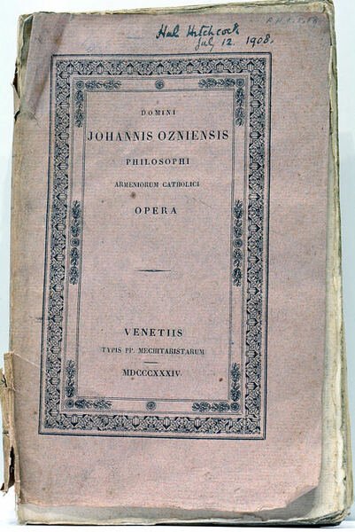 Domini Johannis Philosophi Ozniensis Armeniorum Catholici Opera per R. P. Johannem Bapt. Aucher Vic. Gen. ac Doct. Congreg. Mechit. ex Armenio latine reddita.