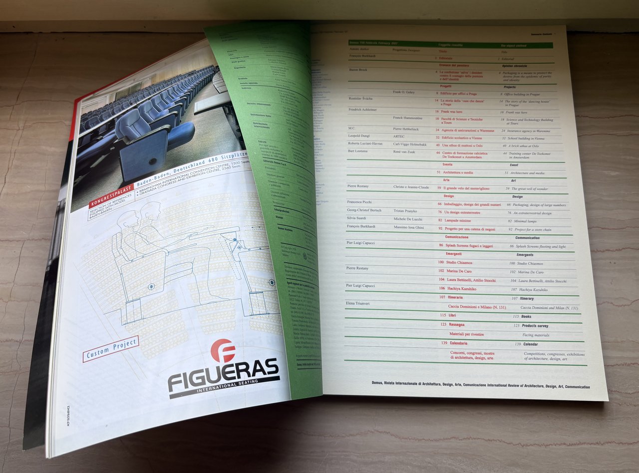 I ed. della rivista mensile: febbraio 1997 numero 790 - L'oggetto rivestito The object clothed (Via Achille Grandi 5/7, Rozzano - Milano). IV/(38)+146 anche ripiegate=184/brossura satinata (La Copertina/ The Cover: Helmut Newton, L'oggetto rivestito/The object clothed). Illustrazioni in nero, b/n e a colori. Grafica/Graphics: Giuseppe Basile. Stato buono (leggera usura della copertina ai margini - volume nel complesso leggermente brunto).