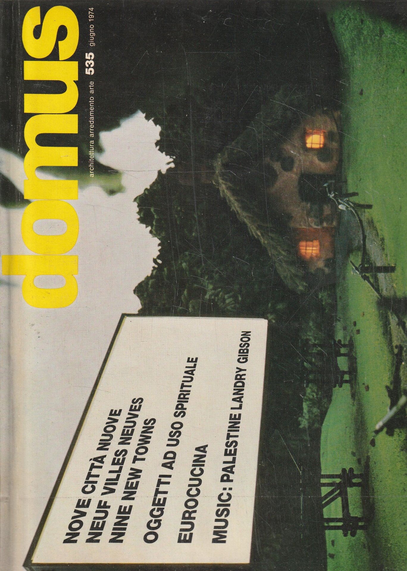 Domus n^535/Giugno 1974. Rivista di architettura arredamento arte. Nove città nuove-Oggetti ad uso spirituale-Eurocucina-Music: Palestine Landry Gibson