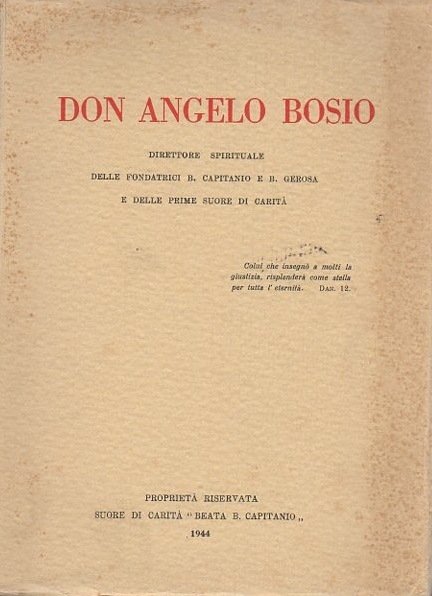 Don Angelo Bosio: direttore spirituale delle fondatrici B. Capitano e B. Generosa e delle prime suore di carità .