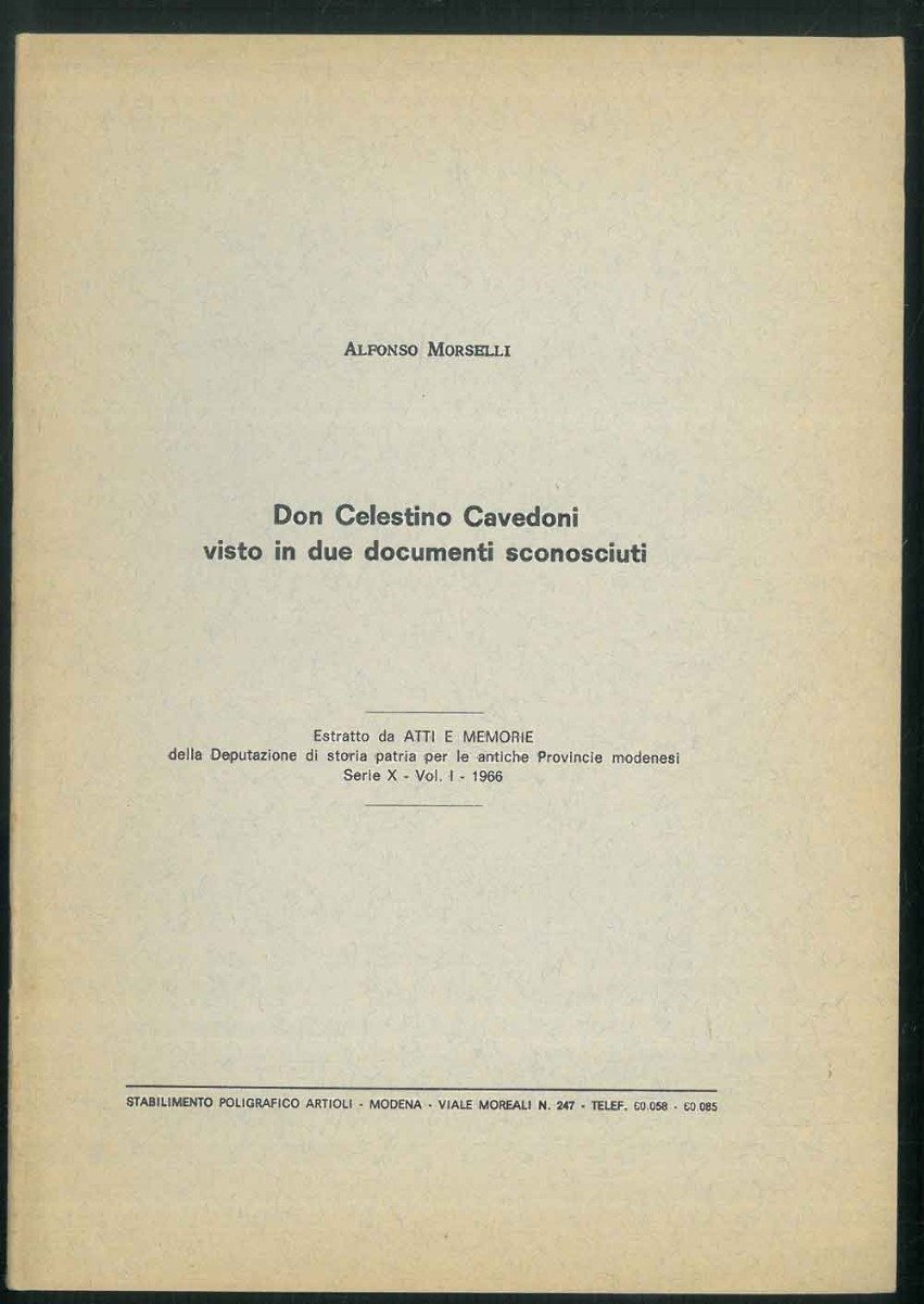 Don celestino Cavedoni visto in due documenti sconosciuti