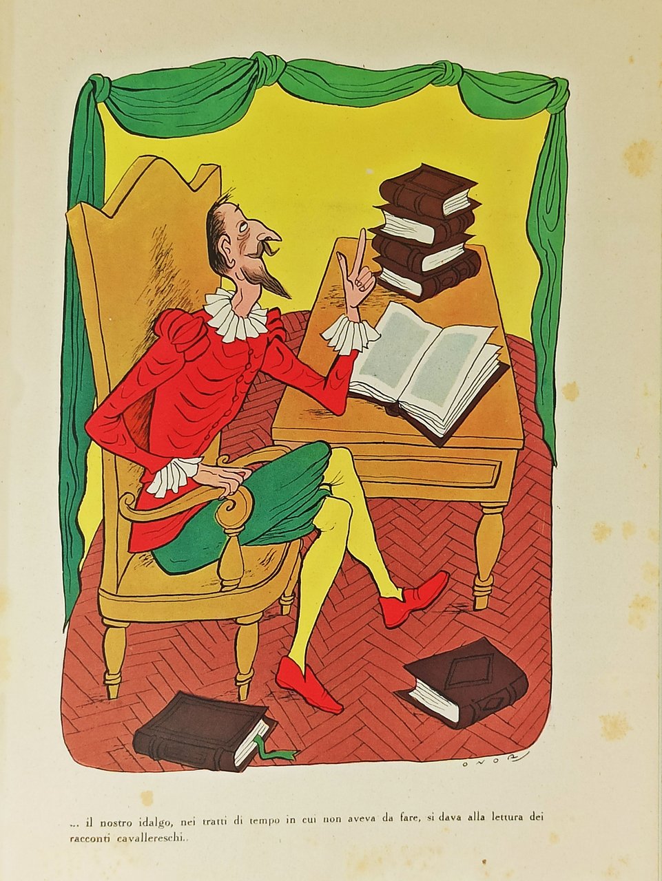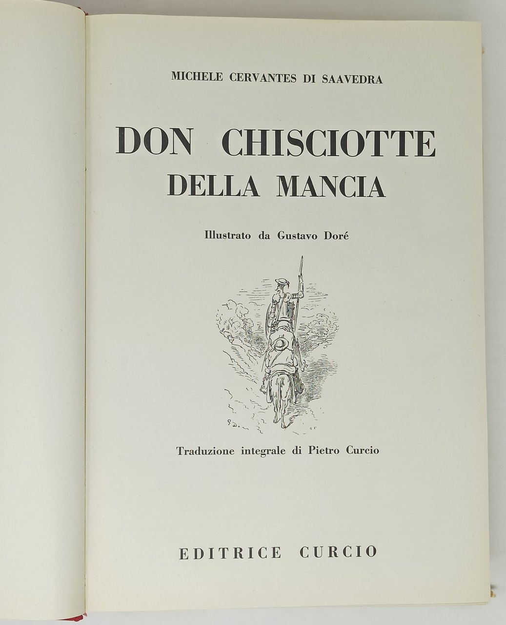 Traduzione integrale di Pietro Curcio. 1950 (Ottobre). Curcio Editore. Dimensioni: 22 x 32 cm circa. Stato di conservazione: Segni del tempo e dell'uso sulla sovraccoperta che, come si può vedere dalle fotografie, presenta una mancanza sul margine superiore della parte anteriore e del dorso, qualche minuscolo strappetto sui margini e una macchiolina marone sulla parte anteriore, in prossimità del dorso. Una firma con indicazione di ex proprietario a biro sulla prima pagina bianca, qualche piccola macchiolina marrone (presumo di natura editoriale) su pagina 97, macchioline gialle sui fogli delle tavole a colori ma, nel complesso, un esemplare ben conservato. Testo stampato su due colonne. Numerose illustrazioni in nero nel testo di Gustavo Doré e 8 tavole a colori, a piena pagina, fuori testo di Onorato. OPERA DA COLLEZIONE.