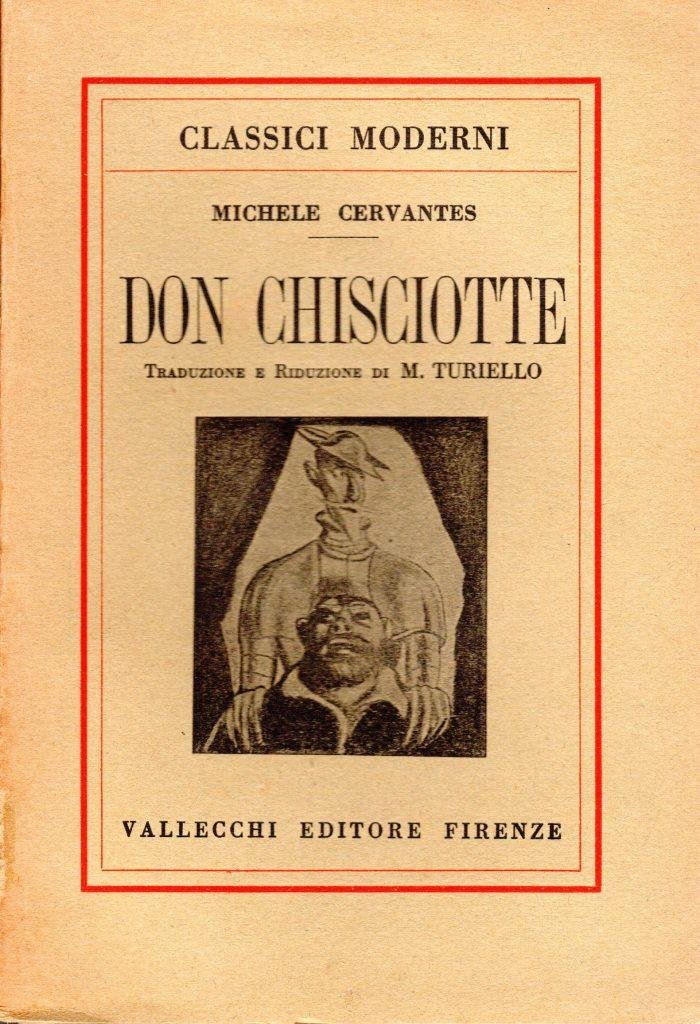 Don Chisciotte, edizione 1930, pp. 178, formato 14 x 20.<BR>Copertina morbida di colore marrone con piccola illustrazione la centro del piatto anteriore e titoli in nero. Traduzione e riduzione di M. Turiello.<BR>Ottime condizioni.