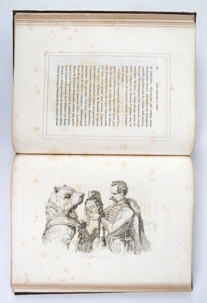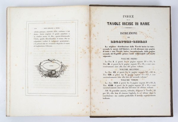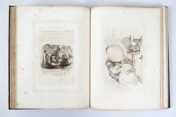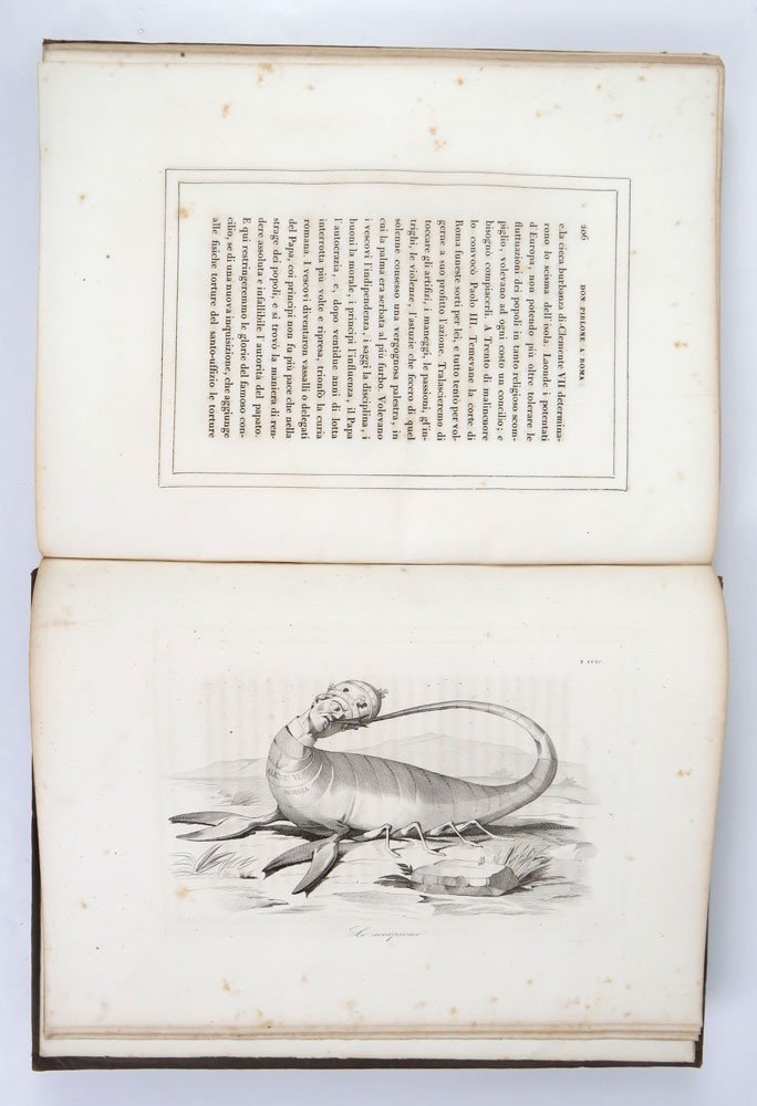 - pp. 216; 208; 220 [2]; incluse 3 belle antiporte allegoriche; ornato da pregevoli grandi iniziali figurate e finali, incisi su legno; illustrato da 306 tavole caricaturali, incisioni in rame.