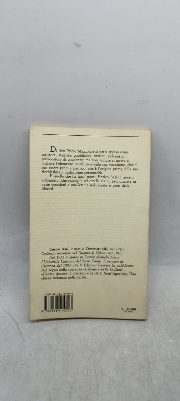 enrico assi vescovo di cremona don primo mazzolari prete della chiesa. , piemme 1990 italiano, 75 °°