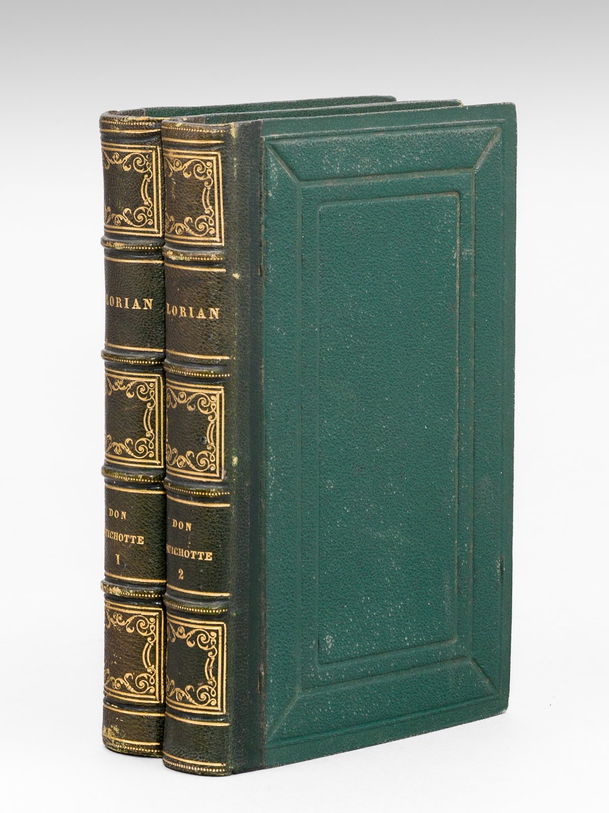 Orné de 16 gravures sur acier, 2 vol. in-12 reliure demi-chagrin vert, dos à 4 nerfs dorés orné, toutes tranches dorées, Librairie de Victor Lecou, Paris, 1850, 2 ff., 232 pp., 2 ff., 216 pp. avec 16 planches hors texte Dans sa préface à sa traduction Florian écrit : "Tout ce que dit le héros, lorsqu'il ne parle pas se chevalerie, semble dicté par la sagesse pour faire aimer la vertu ; son délire même n'est qu'un amour mal entendu de cette vertu. Don Quichotte est fou dès qu'il agit, il est sage dès qu'il raisonne ; et comme il est toujours bon, on ne cesse point de l'aimer ; on rit de lui, et l'on s'y intéresse ; on le sait insensé, et on l'écoute." Bon état (reliures très lég. frottées, qq. rouss., bon exemplaire par ailleurs).