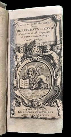 In 16°; (4 compreso frontespizio inciso con titolo entro cornice architettonica), 506, (18) pp. e 7 c. di tav. più volte ripiegate. Legatura coeva in cartoncino con titolo, autore, luogo di stampa e anno di stampa al dorso del volume. Due piccole integrazioni di carta al margine alto e basso bianco del frontespizio realizzate con carta di riso ed al margine esterno bianco della seconda carta ad integrare piccola bruciatura e per il resto esemplare in buone-ottime condizioni di conservazione. Fra le belle tavole ripiegate anche una bella veduta del ponte di Rialto. Prima edizione di questa interessante storia di Venezia, scritta dal noto drammaturgo, uomo politico e scrittore fiorentino, Donato Giannotti (Firenze, 27 novembre 1492 Roma, 27 dicembre 1573). Giannotti fu un fine politico che nelle sue opere cercò di analizzare le diverse forme di organizzazione politica considerando in modo particolare la forma politica repubblicana e divenendo un importante oppositore dei Medici, Insegnò poetica, retorica e cultura greca a Pisa fino al 1525 quando si trasferì in Veneto dove visse per due anni. Giannotti fu anche uno dei leader della breve esperienza della Repubblica Fiorentina del 1527. Fu poi costretto all'esilio al ritorno dei Medici. Fu anche amico di Michelangelo. Scrive, Sergio Marconi nella voce dedicata a Donato Giannotti nel Dizionario Biografico degli Italiani - Volume 54, Traccani (edito nel 2000): "Questo primo soggiorno veneto durò dal giugno 1525 al novembre 1526. Il G. si recò in Veneto non come agente della fazione antimedicea, come aveva supposto il Sanesi, ma per raccogliere informazioni precise sul funzionamento dello Stato veneziano. Il mito della esemplarità del governo veneziano (come costituzione mista: monarchia-oligarchia-democrazia) si era formato in ambiente umanistico già nel sec. XV. Tuttavia, indipendentemente dal modello ideale (improntato a Platone, Aristotele e Polibio) di Venezia, si apprezzava la libertà e la stabilità interna (il Machiavelli, come si sa, non condivideva però tali apprezzamenti). Gli ottimati moderati antimedicei avrebbero voluto adattare a Firenze un simile modello, e il G. in quel momento era assai vicino a tale prospettiva politica, come provano anche le sue frequentazioni. Dall'esperienza del soggiorno a Padova e a Venezia nacque la prima stesura del Libro della Republica de' Vinitiani che, insieme con il De magistratibus et Republica Venetorum di Gasparo Contarini, rimane quanto di meglio sia stato scritto su Venezia in quel periodo (da parte del G. con particolare sistematicità e realismo). [.] La Republica de' Vinitiani, che ha la forma di dialogo umanistico, non va letta solo come risposta a determinati problemi pratici, quali la debolezza del potere mediceo e l'incertezza della situazione politica. Primo frutto maturo della riflessione politico-istituzionale del G., essa sanziona la superiorità di Venezia su Roma e opera un significativo rovesciamento del punto di vista machiavelliano, proponendosi come punto di riferimento importante dell'elaborazione successiva, non solo del Giannotti.". Bibl. Rif.: Willems, Les Elzevier, p. 90, n. 353.
