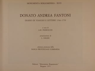 DONATO ANDREA FANTONI. Diario di viaggio e lettere 1766-1770.