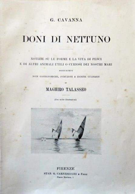 Doni di nettuno. Notizie sulle forme e la vita di pesci e di altri animali utili o curiosi dei nostri mari. Aggiuntevi note gastronomiche, istruzioni e ricette culinarie di Maghiro Talasseo.