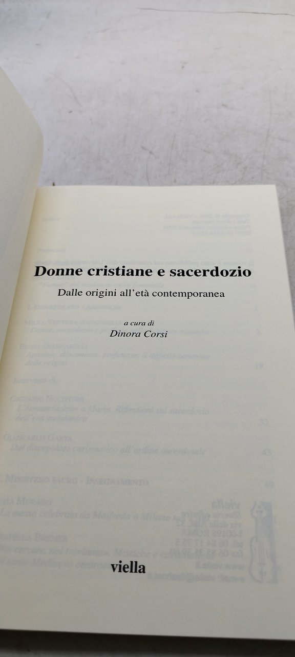 donne cristiane e sacerdozio dalle origini all'età contemporanea viella . , 2004 italiano, pp.271 ^^^