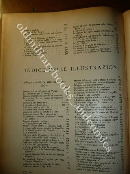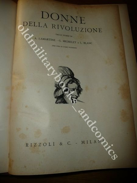 DESCRIZIONE: Rizzoli Milano 1931, legatura in mz. tela e pelle pp. 575 in 4°. Il volume è corredato di numerose immagini in bianco e nero in testo: ritratti, manifesti, riproduzioni di monete, frontespizi di volantini politici e altro. Gli episodi della partecipazione collettiva o singola delle donne alla Rivoluzione Francese vennero, in questa pubblicazione, quasi tutti volti dalle store immortali di Michelet, Lamartine, Luigi Blanc. Perché il lavoro riuscisse, più che fosse possibile, organico, le figure femminili vennero inquadrate nella narrazione sintetica degli avvenimenti storici. I brani riportati dalle tre opere degli insigni scrittori si trovano, nel testo, citati col nome dell'autore. Alla compilazione contribuì uno studioso di storia, il signor Gino Cantamesse. Le riproduzioni fotografiche sono, in gran parte, di stampe e cimeli del Museo Carnevalet di Parigi, del Museo Stampe del Castello Sforzesco, delle Biblioteche Ambrosiane, di Brera e Civica e del Museo del Risorgimento di Milano. CONDIZIONI: Ottime/Perfette. PESO / WEIGHT: 1700 gr. without package