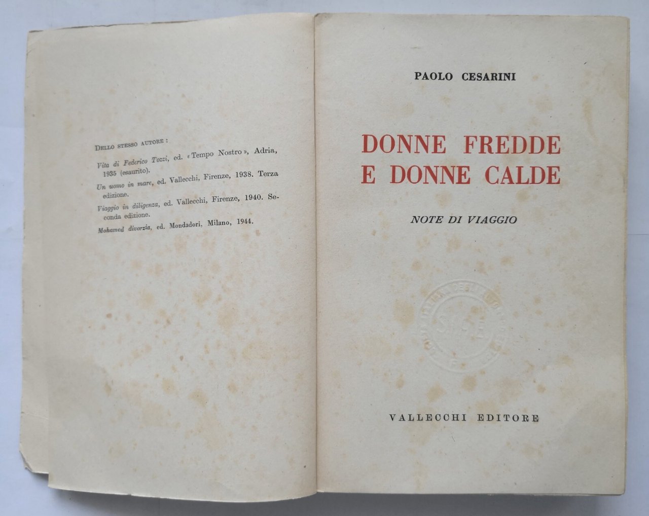 DONNE FREDDE E DONNE CALDE di Paolo Cesarini 1946 Vallecchi I edizione libro