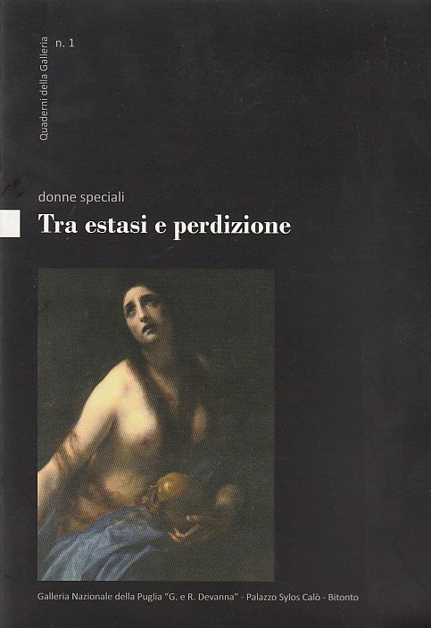 In-8 (Cm 24 x 16,5), pp. 24, brossura editoriale illustrata. Illustrazioni a colori nel testo. Quaderni della Galleria nazionale della Puglia, 1. COME NUOVO - Indice: Ruggero Martines: Introduzione - Von Fabrizio: Presentazione - Teresa Pazienza Pignataro: Non c'è futuro senza memoria - Ilia Binetti: A proposito della "Giornata internazionale della donna" - Antonella Simonetti: Donne speciali. Tra estasi e perdizione. L'iconografia - Nuccia Barbone: "Vaghezza inarrivabile, colorito piacevole ed aria di verità. " La Maddalena di Simone Pignoni. Penitente o in Estasi? - Rosanna Gnisci: Cristo e la samaritana al pozzo si Carlo Rosa - Anna Ilaria Lavacca: Transverberazione di Santa Teresa D'Avila - Bibliografia