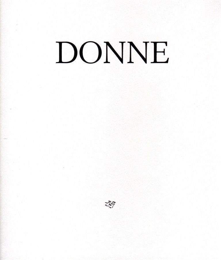 Donne, prima edizione 1994, formato 13 x 15.<BR>Copertina morbida di colore grigio con titoli in nero. All'interno tre incisioni e tre poesie. Tiratura in 450 esemplari stampata da Bandecchi &Vivaldi. <BR>Ottime condizioni.