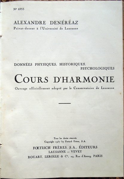 Données physiques, historiques, psychologiques. Cours d'harmonie. Ouvrage officiellement adopté par le Conservatoire de Lausanne